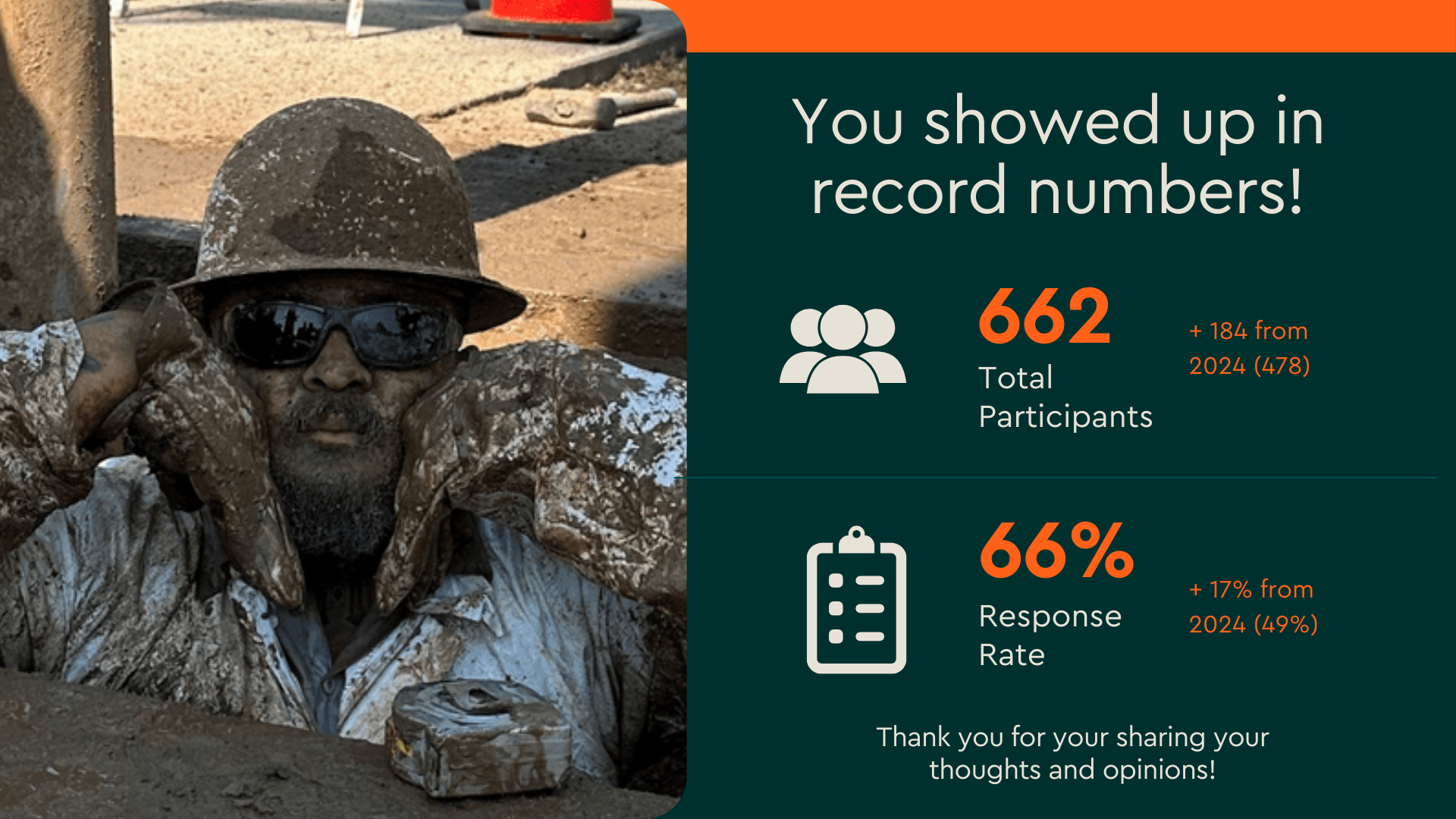 You showed up in a big way! With 662 participants and a 66% response rate, this year’s survey had its highest engagement yet, up 184 responses from last year. Thank you for making your voice heard and helping shape the future of work at the City.